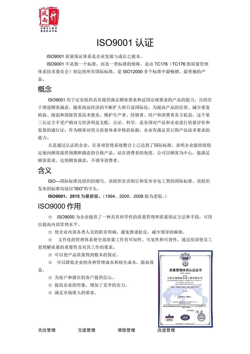 1.ISO9001認(rèn)證(質(zhì)量管理體系認(rèn)證)