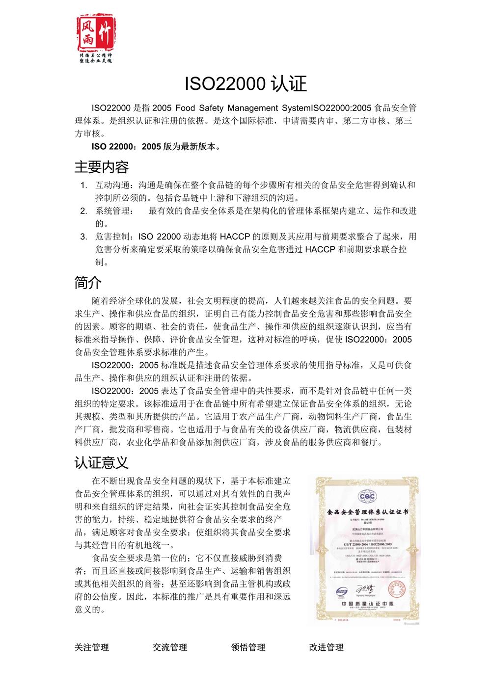 4.ISO22000認(rèn)證、HACCP認(rèn)證(食品安全管理體系認(rèn)證)