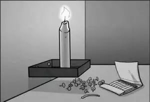 許多人嘗試用圖釘把蠟燭釘在墻上,行不通。有些人想到他們可以點燃火柴,熔化蠟燭的底部,嘗試把它黏在墻上。
