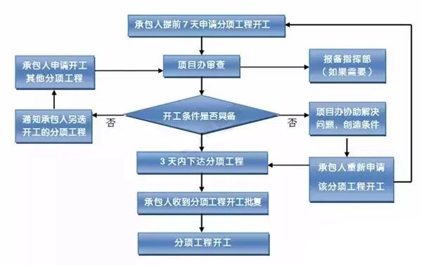 如何高效組織項(xiàng)目的各項(xiàng)管理工作,優(yōu)質(zhì)高效完成建設(shè)任務(wù),是作為項(xiàng)目管理人員時(shí)時(shí)刻刻都在關(guān)注的問(wèn)題。而在項(xiàng)目部的實(shí)際管理工作中,經(jīng)常出現(xiàn)各種協(xié)調(diào)未果、措施不落實(shí)、計(jì)劃成空談、管理工作效率低下等現(xiàn)象。下面這些框圖,涵蓋了從項(xiàng)目開(kāi)工到竣工豐富的工作內(nèi)容,無(wú)論是以此來(lái)規(guī)范自身管理工作,或是作為施組方案編制的圖表素材,都是大有用處的。